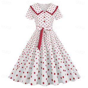 خمسينيات الغريب من نوعه فستان قديم فساتين فستان سوينغ أكمام قصيرة منقط A-الخط ملابس تنكرية للفتيات مهرجان حفلة تنكرية مناسب للبس اليومي حفلة العزباء للأطفال فستان للربيع والصيف
