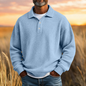 Homme Chemises Polo Gaufre Texturé Occasionnel Vacances Col Rabattu manche longue Mode Couleur Unie Uni Boutons Pur Automne Printemps & Automne Coupe régulière Noir Vert Claire Vert Bleu Ciel Pourpre