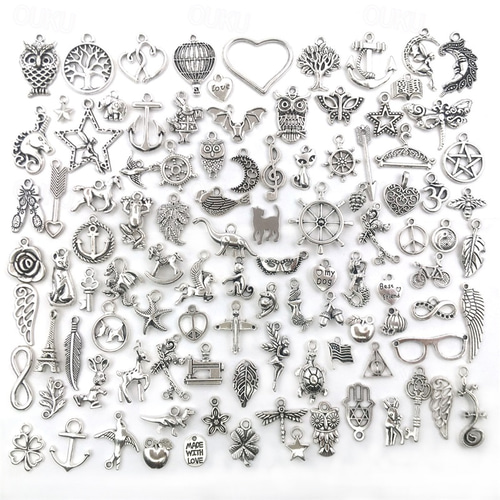 100 יחידות תכשיטים בכמויות גדולות ייצור קסמי כסף מעורבים קסמי מתכת מכסף טיבטי חלק תליוני עשה זאת בעצמך לייצור תכשיטי צמיד שרשרת ויצירה