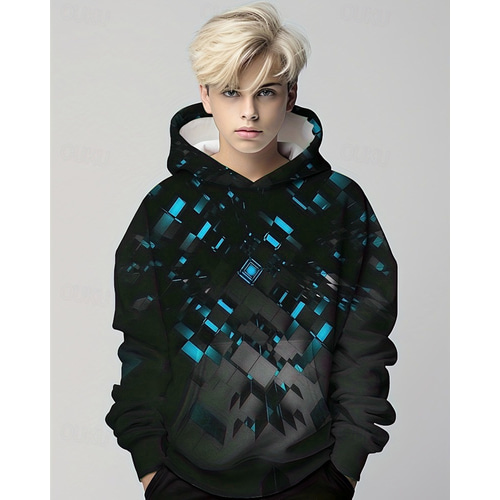 Boys 3D Graphic Geometric Hoodie Long Sleeve Spring Fall Fashion Streetwear Kids 4-12 Years Hooded Outdoor Casual Daily Regular Fit