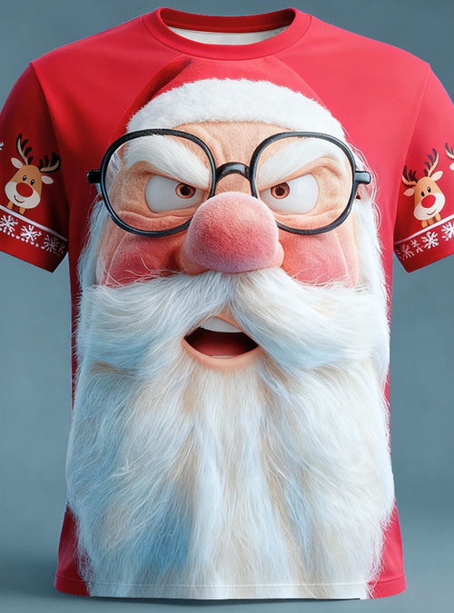 Christmas Men's Santa Claus 3D Cartoon T Shirt Short Sleeve T shirt 3D Print Crew Neck Shirt Daily Designer Artistic Vacation Party Street Red 3 Red Red 2 All Seasons Clothing Apparel S M L XL XXL