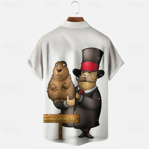 Groundhog Day Men's Animal Costumes Casual Shirt Button Up Shirt Short Sleeve Casual Causal Casual Summer Spring Turndown Button Up Pocket White