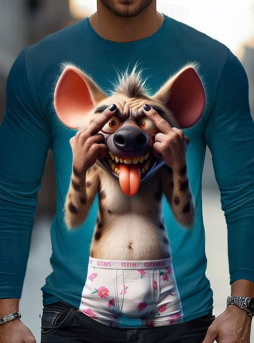 Men's 3D Hyena T Shirt Long Sleeve T shirt 3D Print Crew Neck Shirt Fashion Basic Street Casual Daily Blue Light Blue Green Summer Spring Clothing Apparel S M L XL XXL XXXL