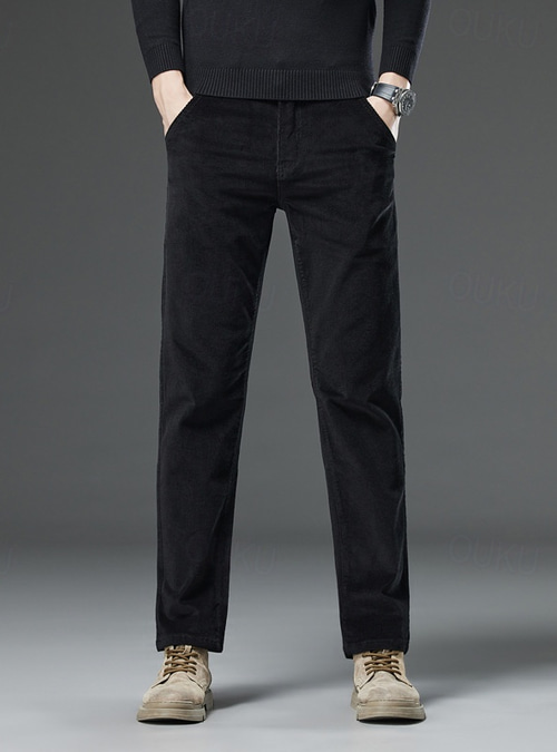 Men's Dress Pants Corduroy Pants Trousers Chinos Pocket Buttons Plain Comfort Formal Party Work Fashion Classic Style Black Wine Micro-elastic