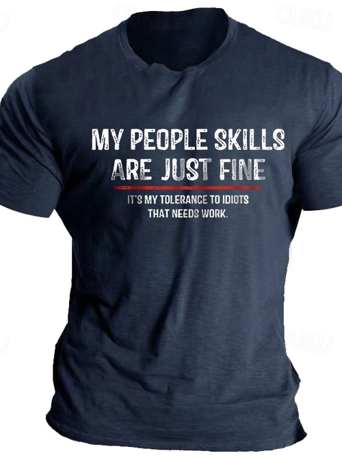 Men's Funny Graphic T-Shirt: 'My People Skills Are Just Fine, It's My Tolerance To Idiots That Needs Work' Sarcastic Short Sleeve, Work Humor