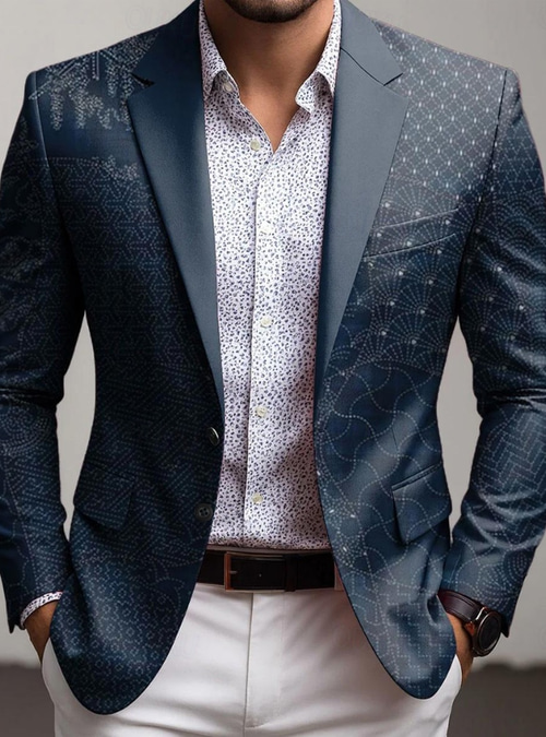 Men's Graphic Blazer Jacket Coat Comfortable Breathable Artistic Casual Daily Party Evening Wear Festival 3D Print Buttons Multi Pocket Spring Fall & Winter Notch Long Sleeve Blue Purple Green