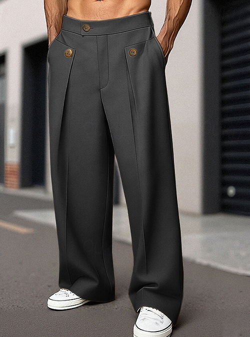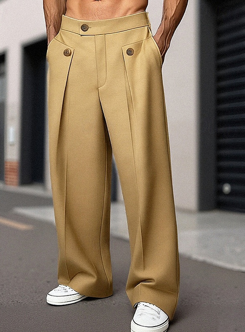Men's Trousers Dress Pants Chinos Pocket Buttons Plain Comfort Formal Party Work Fashion Classic Style Black Khaki Micro-elastic