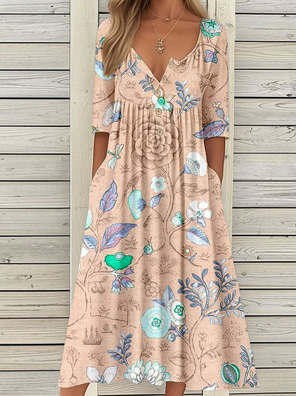 Dam Mini klänning Vardagsklänning Boho Chic klänningar A linjeklänning Boho-klänning bohemliv Vintage Semester Dagligen Normal Blommig 3/4 ärm Naggad hals Rodnande Rosa Blå Sommar